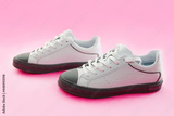 Antalya, Turkey, July 23, 2021. Men's white sports sneakers with gray soles