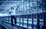 Engineer under inspection and checking construction process railway switch and checking work on railroad station .Engineer wearing safety uniform and safety helmet in work.