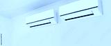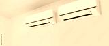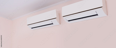 Close up air conditioner split type wall mounted in home room concepts of cool or heat or air cleaning filter and service repairing and air condition maintenance.
