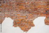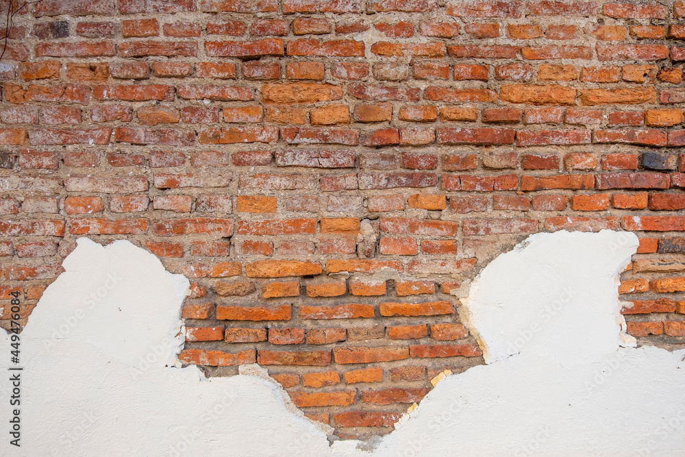 Wall the style vintage white background of old cement brick texture has orange red many horizontal block which are beautiful.