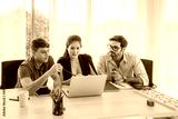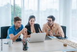 Businessmen and businesswoman team looking at computer and paper of work discussing for work diagram in office company with business meeting success concept.