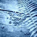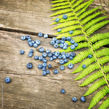 Immune boosting and natural remedy for immunity concept. Food, summer composition with organic, wild blueberries and fern leave on a wooden background. Eco friendly, mindful eating