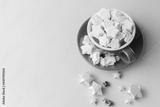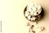 a cup of marhmallows against plain background. copy space. overexposed. soft focus. blurry background
