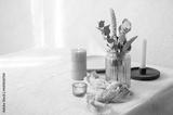 Minimalistic composition with Scandinavian home decor details copy space.