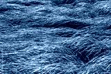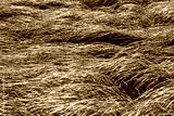 Zielona trawa mocno rozwiana na wietrze.