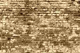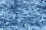 Red old brick wall with blue pattern. Cement showing through.