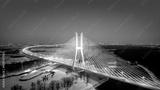Winter drone photography of Redzinski Bridge over the Odra River in Wroclaw, Poland