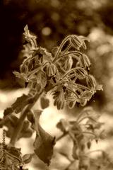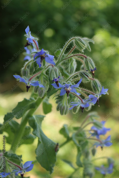Borage in bloom with many blue flowers on summer . Borago officinalis in the garden