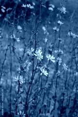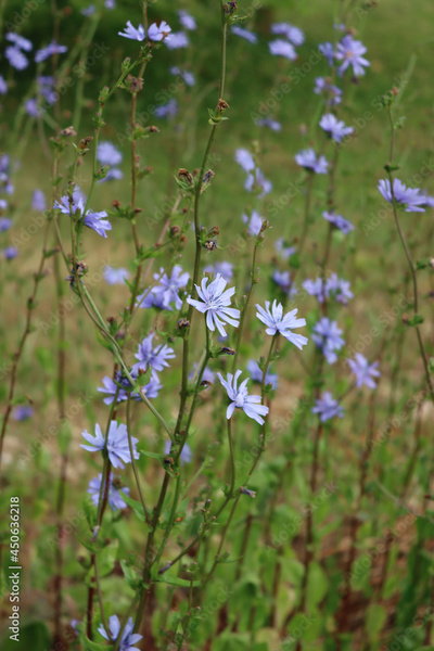 Chicory plant in bloom with many blue flowers. Cichorium intybus in the garden on summer