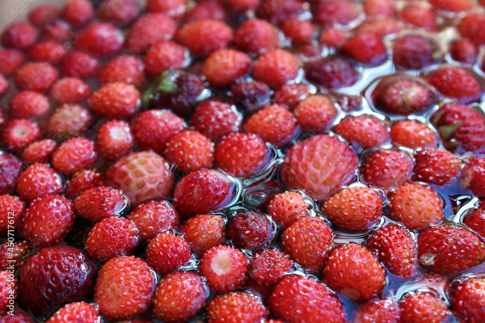 Forest strawberries, wild strawberries. Ripe berry, background.