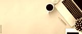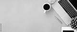 Top view desk or top view table or modern office desk flat lay background with computer laptop and office equipment for work area copy space and education school concepts.