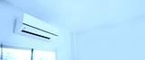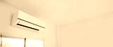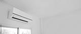 Close up air conditioner split type wall mounted in home room concepts of cool or heat or air cleaning filter and service repairing and air condition maintenance.