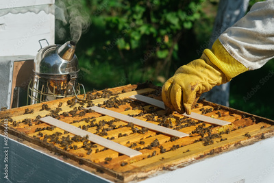 The beekeeper treats the bees of the varroa mite. Diseases of bees and their treatment. Varroasis. Varroa destructor.