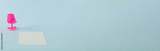 Creative idea made pink office chair and white paper on blue pastel background. Minimal composition.