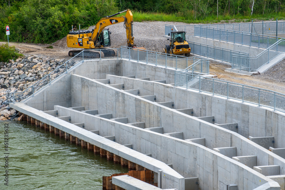 Fischtreppe im Bau für Laichwanderung am Lech nördlich von Landsberg am Lech
