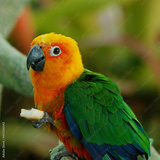 The sun parakeet, also known in aviculture as the sun conure,is a medium-sized, vibrantly colored parrot native to northeastern South America.