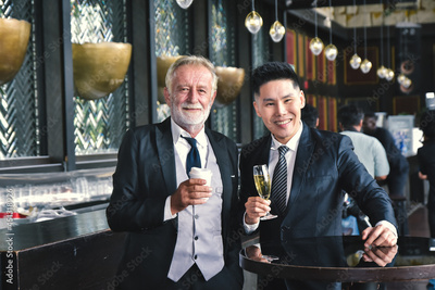 People drink celebrate at a corporate party.