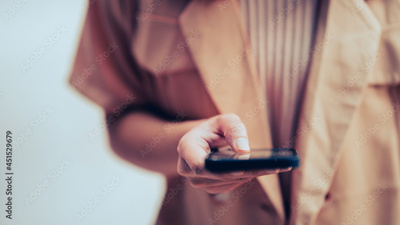 Closeup Hand of woman using smartphone, she chatting online messaging and social network on mobile.