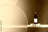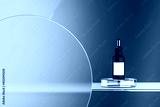 The dropper bottle on glass platform. abstract background for cosmetic presentation or ads. 3d rendering