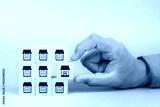 Franchise e-commerce, Hand choose cube wooden block stack with franchise business e-commerce store growth with graph icon for change financial marketing to online platform adjust to survive and grow.