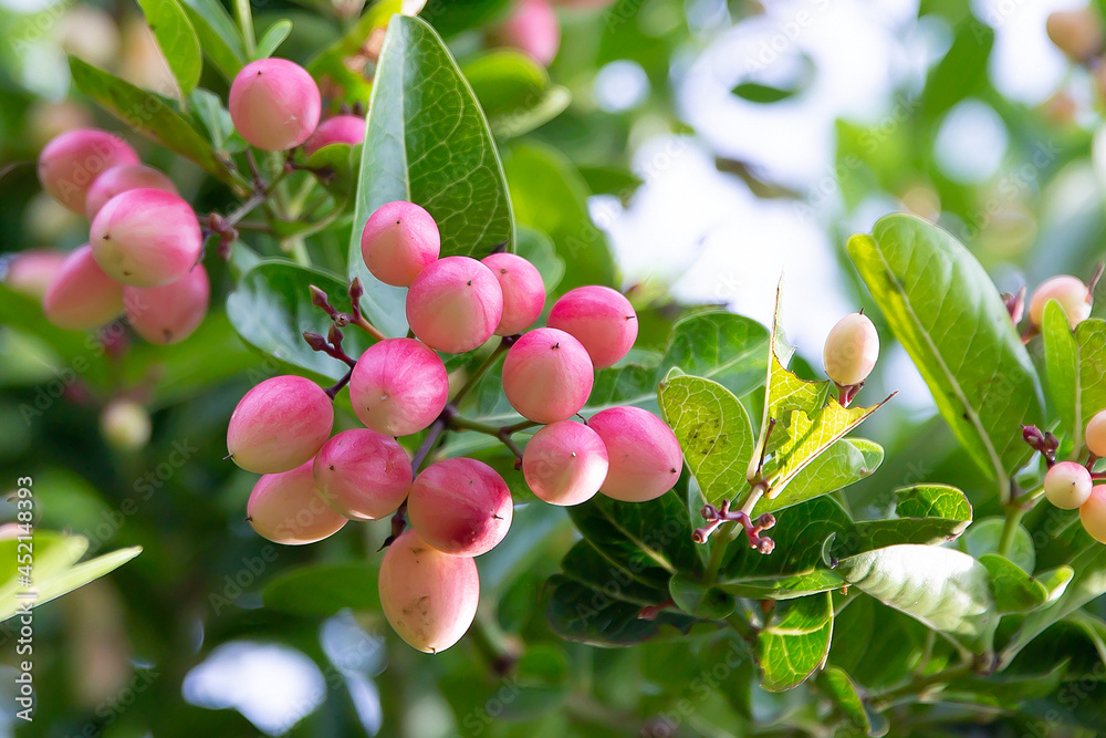Close-up fresh mango yawn lime booing or Bengal currant, Christ thorn or carunda or karonda sour fruit in Thailand.