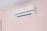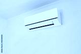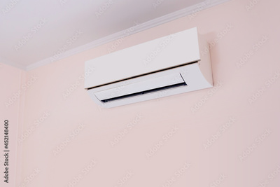 Close up air conditioner split type wall mounted in home room concepts of cool or heat or air cleaning filter and service repairing and air condition maintenance.