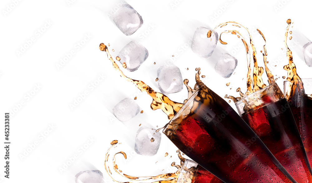 Fresh coke background with ice