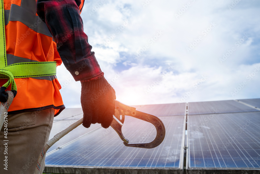 Engineers checking and maintenance equipment at industry solar power,Solar Energy,Clean Energy,efficiency and professionalism concept.