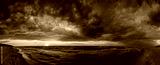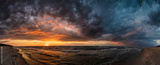 panorama wybrzeża Morza Bałtyckiego wieczorem po burzy podczas zachodu słońca na plaży