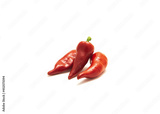 Three organic naturally ripen Fresno peppers or Fresno chili pepper isolated on white