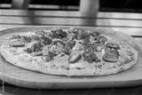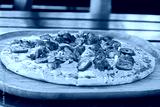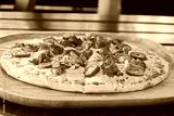 spicy chicken pizza, spiced chicken cubes and mozzarella cheese combination on flat bread, italian food