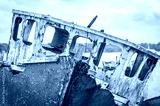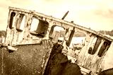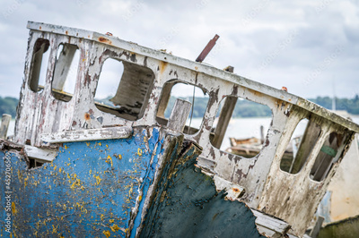 Old abandoned ship wreck on the river bank