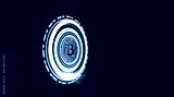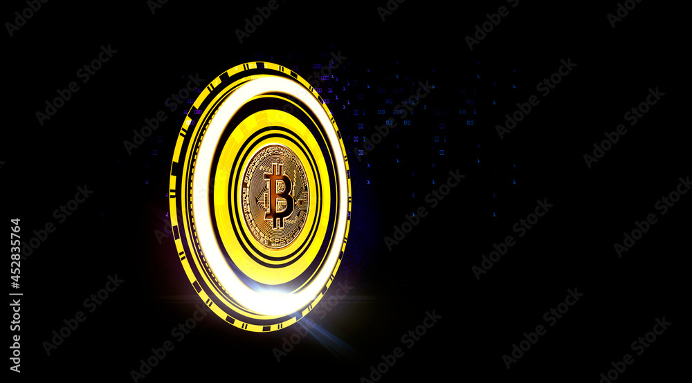 Cryptocurrency bitcoin, digital money and yellow circle banner web with copy space on dark background - Stock Market Concept