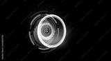 Cryptocurrency bitcoin, digital money and blue circle banner web with copy space on dark background - Stock Market Concept