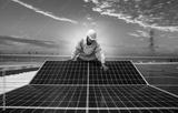 Engineer wearing unifrom and helmet inspect and check solar cell panel ,solar cell is ecology energy sunlight power installation for industrail ,alternative environment power concept.
