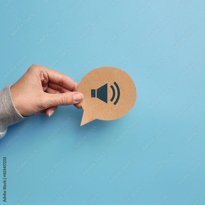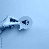 A conversation cloud and a speaker icon on it. The phone's loud sound symbol