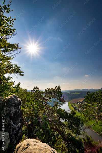 Rock formations and the view to the Elbe from the Bastei Bridge