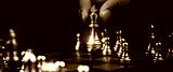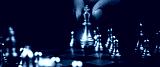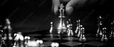 Close up king chess challenge or battle fighting with falling chess on chess board concepts of leadership and strategy or strategic plan and human resource or risk management or team player.