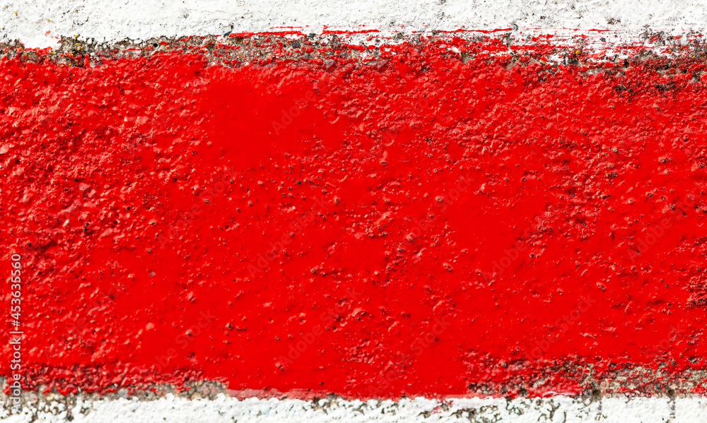 A single strip of bright red paint brush stroke extreme closeup abstract background texture, frame, creative wide empty blank red backdrop, border copy space, red colored painted wall grunge wallpaper