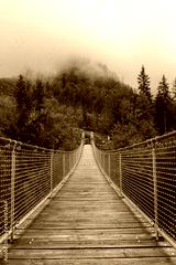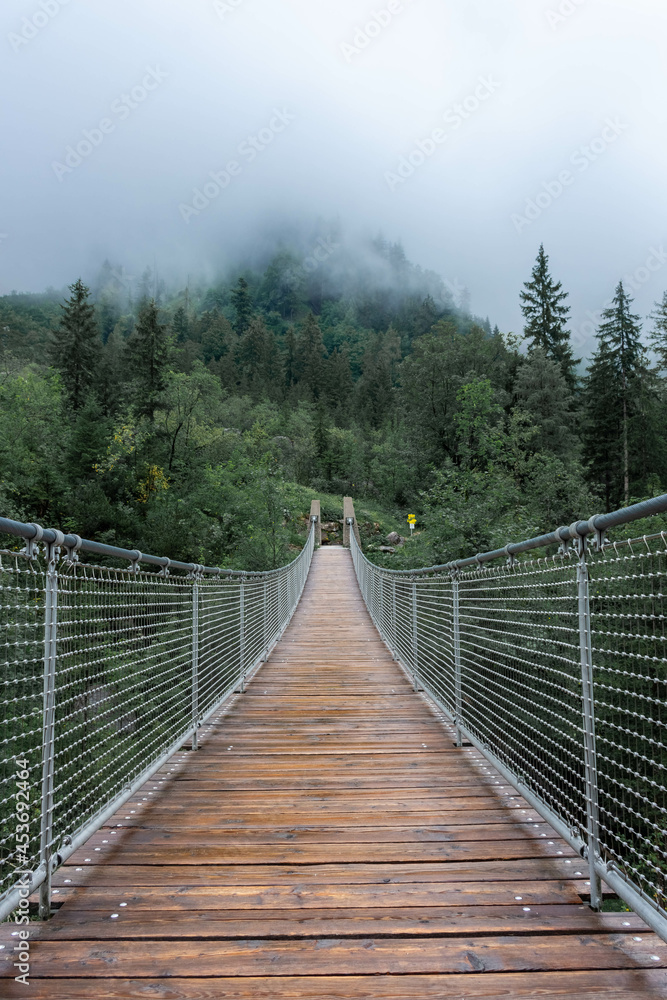 The Hangebrucke, hanging wooden bridge in the forest of Berchtesgaden National Park, Germany