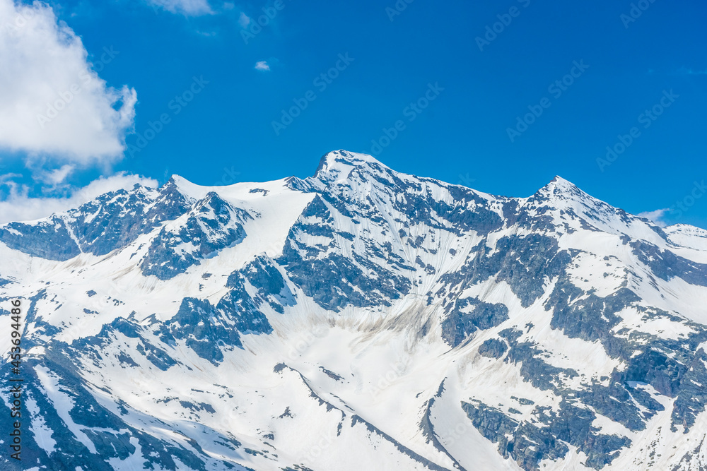 Alpine landscape of the snowy mountains at the border between Italy and France