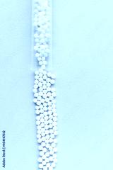 Homeopathy medicine alternative herbs. Homeopathic globules and glass bottle on a blue background. Health care and medicine concept.
