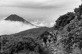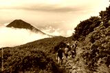 group of hikers in the mountains and izalco volcano at the background, el salvador
