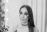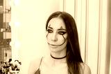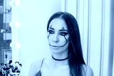 A young beautiful girl in a beautiful festive clown makeup for the Halloween holiday. Happy Halloween concept.
