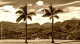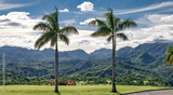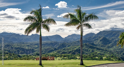 Palm Trees and Overlook with View of Tropical Forests and Jagged Mountains outside of Clark, Philippines - Pampanga, Luzon, Philippines