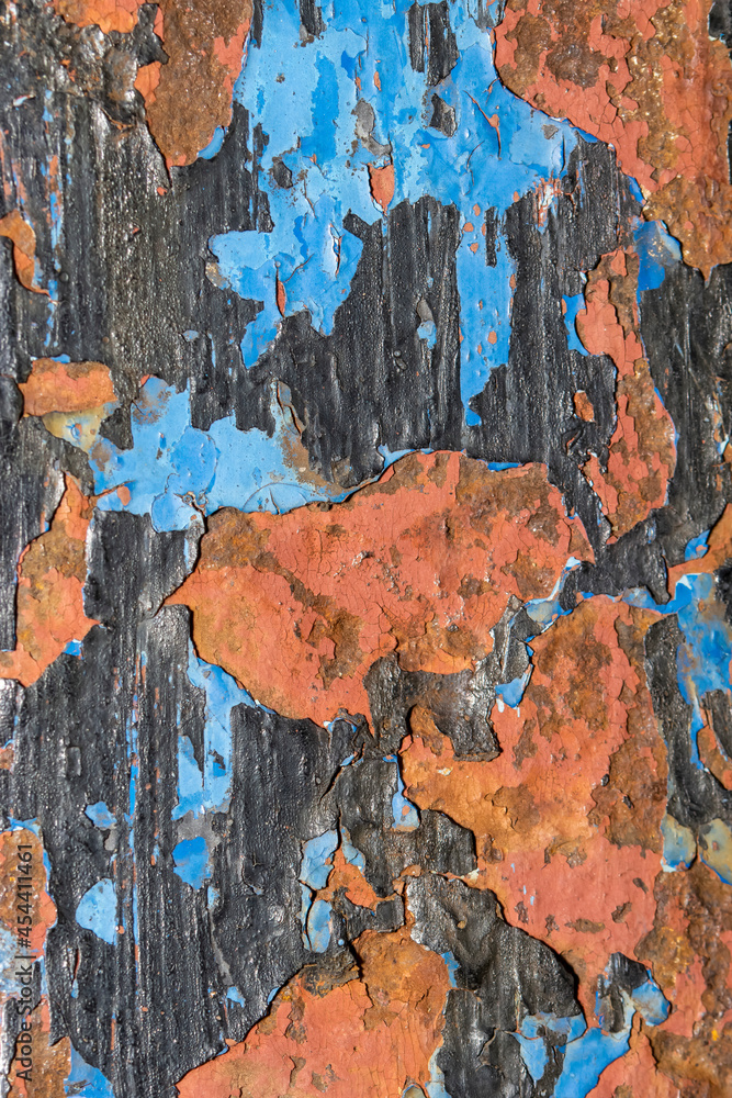 Old cracked and peeled paint on rusty sheet metal