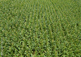 Aerial view of corn field view from drone. Corn can be considered either a grain or a vegetable, based on when it is harvested.