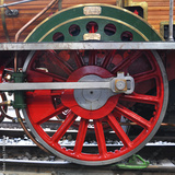 Wheel of an old train in the Museum of Transport in Lucerne, Swi