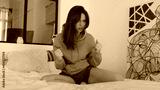 Stressful caucasian woman on bed