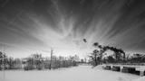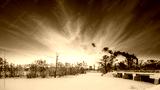 Dobrush, Gomel Region, Belarus. Panorama Of Old Paper Factory Tower At Winter Evening Or Night. Historical Heritage. Lunacharsky Avenue.